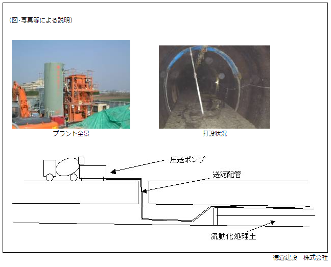 | 備考 | 現在使用されていない荒川左岸の旧左岸導水路が老朽化している為、坑内への地下水の漏水による地盤沈下、コンクリートの劣化より、損壊した場合の地盤沈下等の事故防止を未然に防ぐことを目的とする。又、現在シールド工事を施工しておりこれより発生する土砂・汚泥を建設副産物の再利用の観点から、埋戻し材料として資源の有効活用し流動化処理工法により坑内を充填する。 |